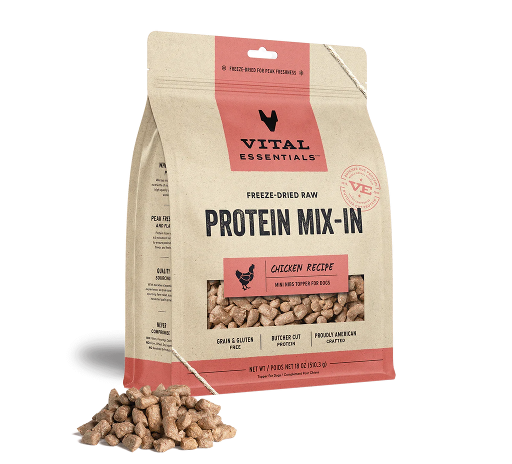 Add a boost of raw protein benefits to every meal! Made from humanely harvested butcher cut protein, our nib topper will help your pup build strong muscles for more play, naturally support their digestive and oral health, and provides essential nutrients to support their vitality.