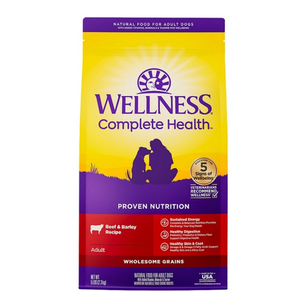Wellness Complete Health natural pet food is made with carefully chosen, authentic ingredients for everyday health. A nutrient-rich blend of whole foods to fulfill the unique health needs of your dog, providing whole-body nutritional support to promote complete health. Supported by omega fatty acids, antioxidants, glucosamine, probiotics and taurine for a healthy heart. Scientifically crafted by our team of veterinarians and scientists to provide nutrition for a lifetime of wellbeing. Easily add our food to your dog food storage container for a fresh scoop of dog food every time. Your small dog, large dog, senior dog, adult dog or puppy will love our tasty grained and grain free dog food options. We produce our high protein dog food in the USA with globally sourced ingredients. Whether you're looking for beef dog food, lamb dog food, chicken dog food, salmon dog food, or whitefish dog food, there is a recipe for you! Try our entire portfolio of high quality dog food today.